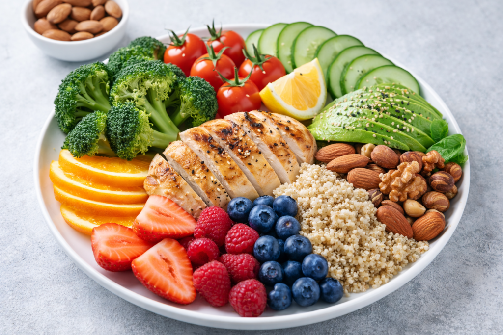 30 की उम्र के बाद सुंदर दिखने से ज़्यादा ज़रूरी है अंदर से स्वस्थ रहना। हरी सब्ज़ियाँ, मौसमी फल, पर्याप्त प्रोटीन और ड्राई फ्रूट्स शरीर को ज़रूरी पोषण प्रदान करते हैं। पानी की कमी से स्किन जल्दी ड्राई और बेजान दिखने लगती है, लेकिन अक्सर महिलाएँ दिनभर की भागदौड़ में पानी पीना भूल जाती हैं। जब शरीर सही मात्रा में हाइड्रेटेड रहता है, तो उसका असर चेहरे और त्वचा पर साफ दिखता है। बाहरी प्रोडक्ट्स से ज़्यादा असर अंदर की सेहत का होता है, इसलिए संतुलित खानपान को प्राथमिकता देना ज़रूरी है।