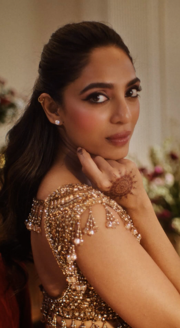 सोभिता धूलिपाला ने अपने हेयर और मेकअप को भी पूरे लुक के अनुरूप रखा। उन्होंने अपने बालों को बड़ी सादगी से, परिष्कृत तरीके से स्टाइल किया, जिससे उनके चेहरे की शानदार विशेषताएँ और भी स्पष्ट रूप से उभरकर आईं। मेकअप की बात करें तो उन्होंने ब्राइडल टच के अनुरूप ड्रामा से परे एक शार्प और स्कल्पटेड मेकअप लिया। आंखों को परिभाषित किया गया था और त्वचा पर एक सौम्य लेकिन स्पष्ट स्कल्पचरिंग दिखाई दे रही थी, जिससे उनके चेहरे की बनावट और खूबसूरती दोनों को मजबूती मिली। मेकअप का मुख्य फोकस उनके चेहरे की तेज विशेषताओं और साफ-सुथरी लाइनों पर रखा गया, जो इस भारी कढ़ाई और गोल्डन आउटफिट के साथ एक शानदार तुकबंदी पेश कर रहा था। इस संयोजन ने देखे जाने वाले हर व्यक्ति का ध्यान खींचा और सोभिता के लुक को ब्राइडल फैशन में एक बेहतरीन उदाहरण बना दिया।